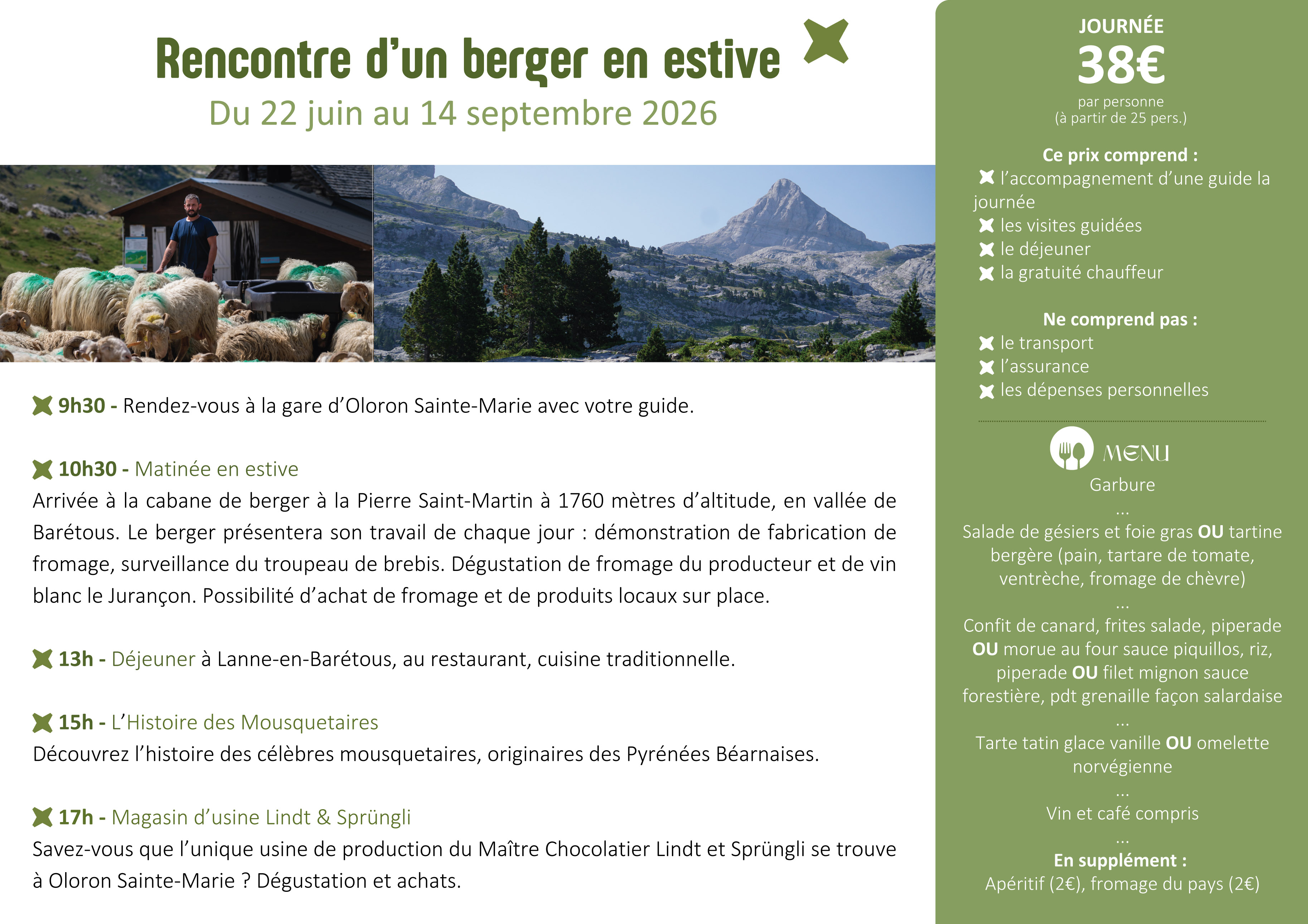 9h30 – Rendez-vous à la gare d’Oloron Sainte-Marie avec votre guide.