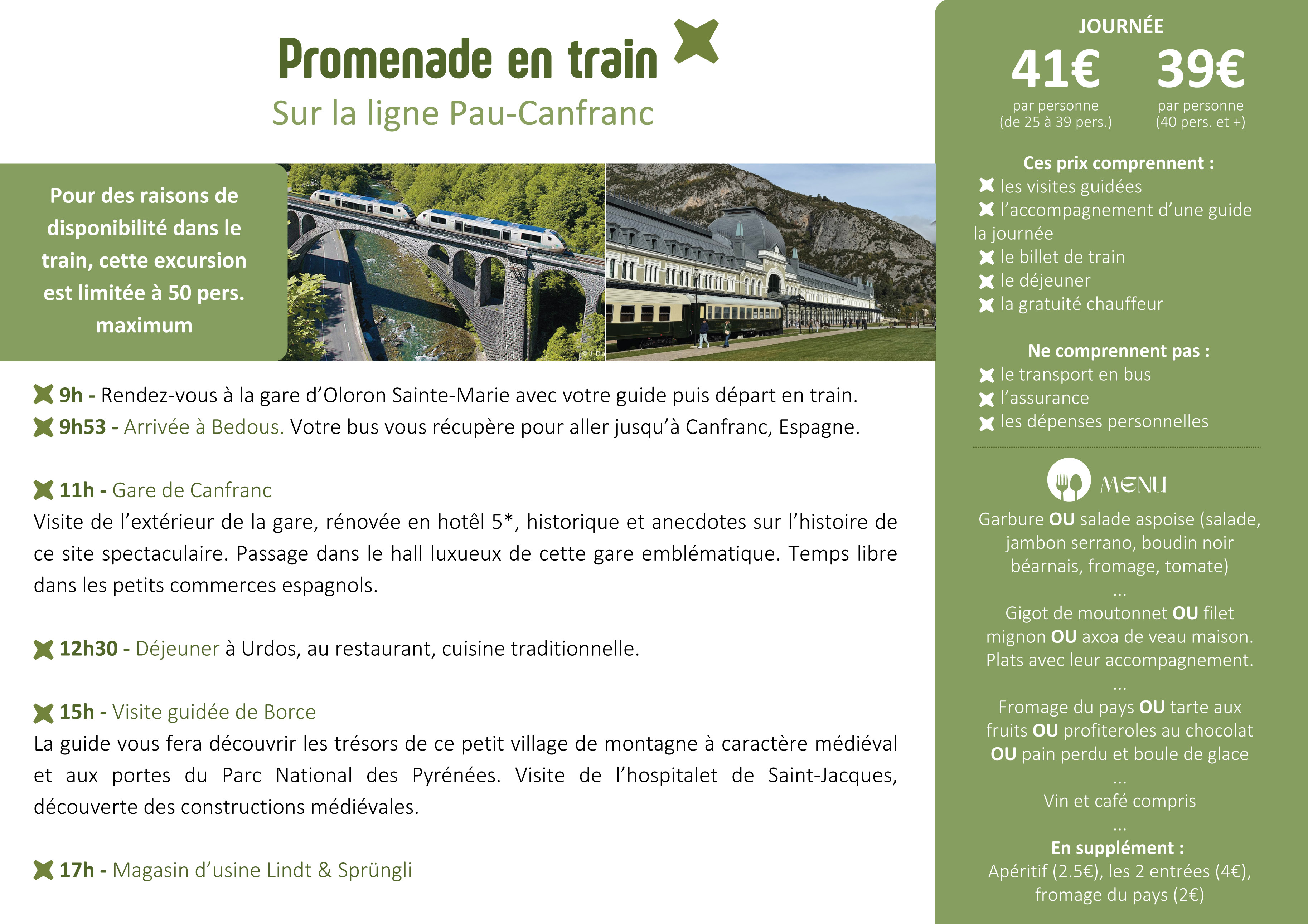 9h – Rendez-vous à la gare d’Oloron Sainte-Marie avec votre guide puis départ en train.
