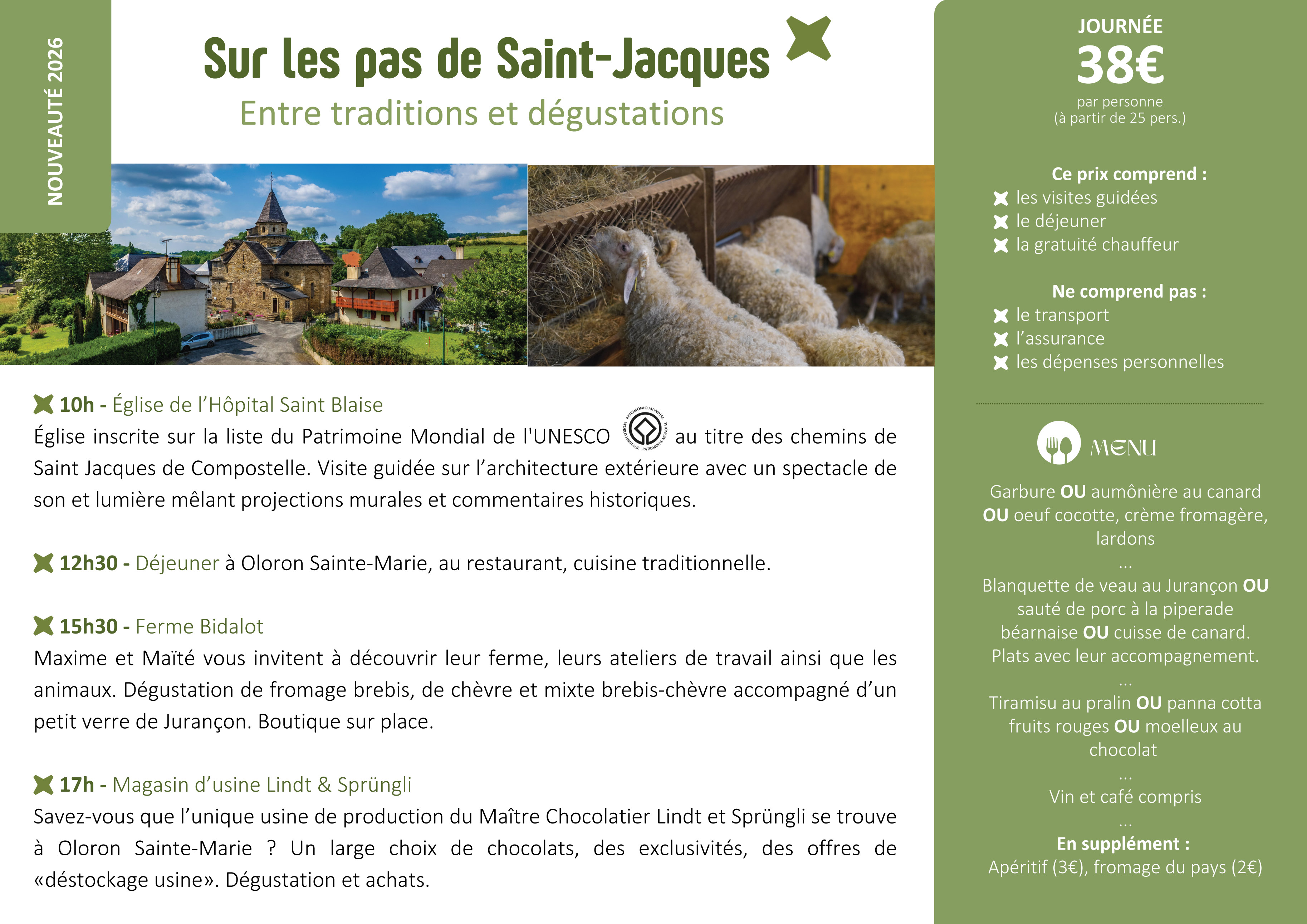 12h30 – Déjeuner à Oloron Sainte-Marie, au restaurant, cuisine traditionnelle.